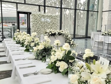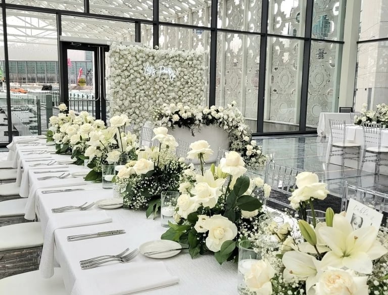 Curated décor rentals including backdrops, flower walls, signage, tabletop décor, and statement pieces designed to transform any event space into an unforgettable experience.