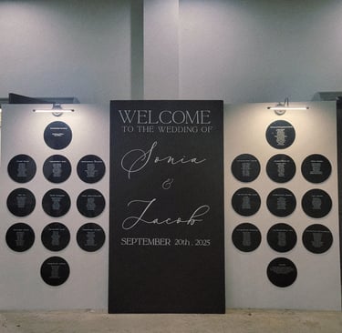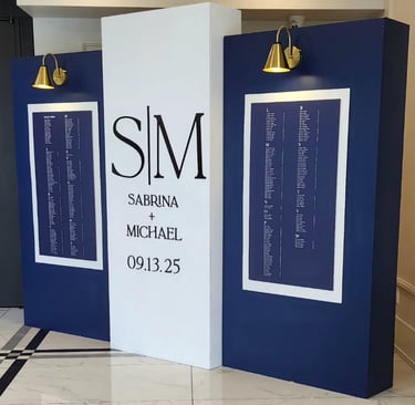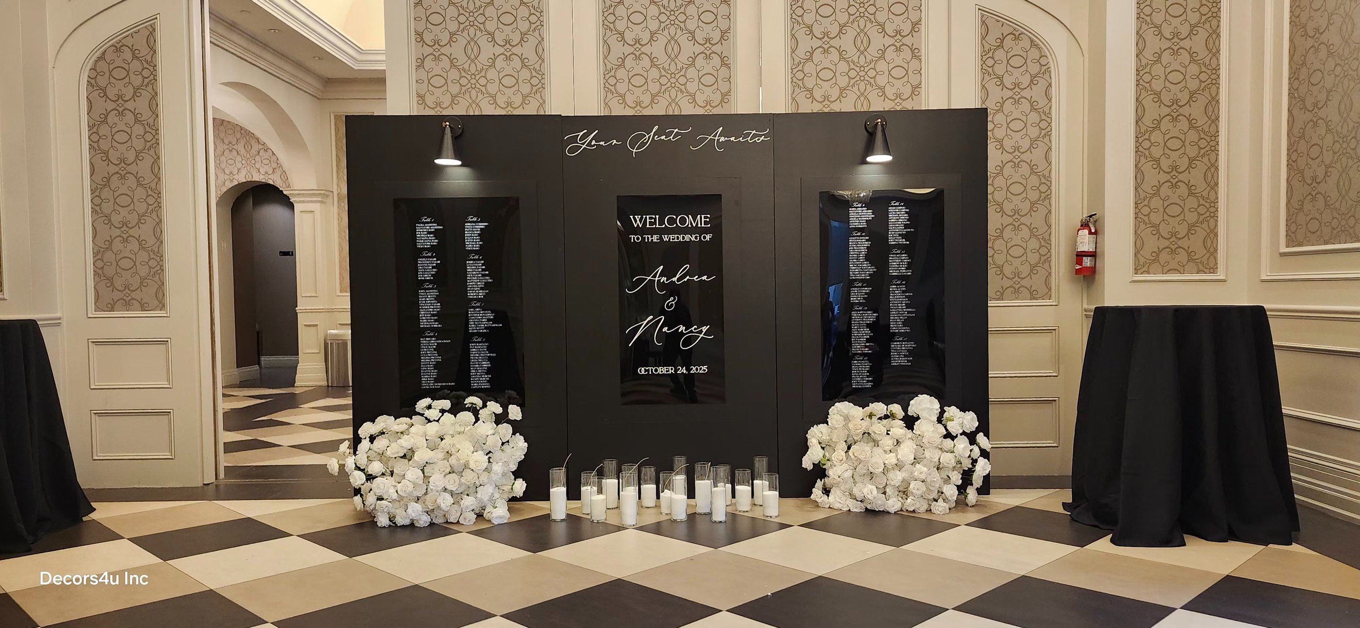 This custom made seating chart by us at Decors4u was hand crafted for perfect for this beautiful wedding at the Royal Ashburn Golf Club in Whitby. We received a tremendus amount of compliments from guests who were not only impressed by the design but also by how it seamlessly blended with the overall theme of the event. Every detail was meticulously thought out to ensure that each guest felt a personal connection to their designated spot. If you are looking to create a memorable seating chart that leaves a lasting impression on your guests, look no further... Our team dedicates itself to transforming your vision into a stunning visual representation that captures the essence of your special occasion.