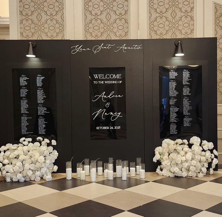 Create a seamless and memorable guest experience with our luxury seating chart rentals designed for upscale weddings and elegant events across Toronto and the GTA. A beautifully curated seating chart not only elevates your décor but also ensures smooth guest flow, making every part of your celebration feel intentional and sophisticated.