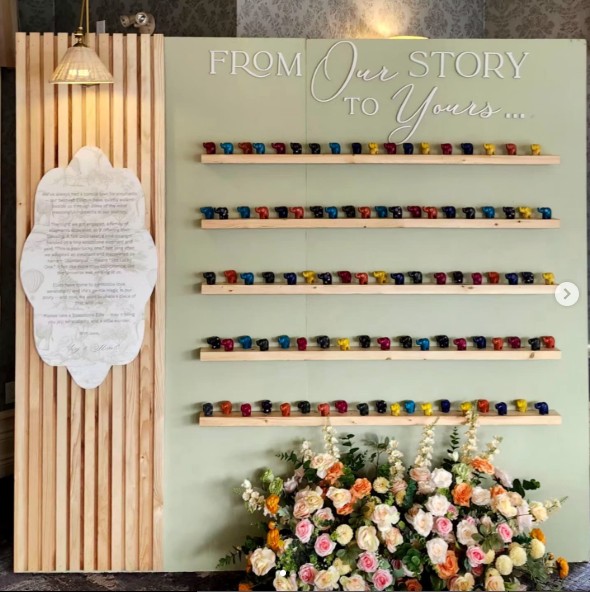 At Bellevue Manor venue, the charming seating chart that proudly declares, "We saved you a seat." This thoughtful greeting sets the tone for an unforgettable event, making each guest feel cherished and included. The with two elegant white walls that serve as a backdrop with black shelves, can elegantly display favors or champagne flutes. This setup not only adds a touch of sophistication but also creates a functional space for guests to easily access delightful tokens of appreciation or toast to memorable moments.